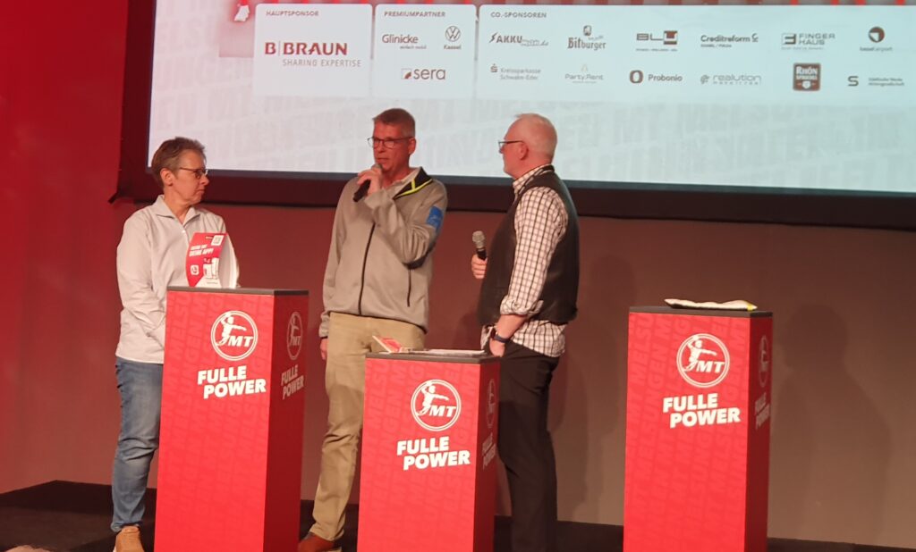 Vor dem Hintergrund einer geplanten künftigen Zusammenarbeit mit der MT Melsungen als bisher einziger Handball-Bundesligist mit einer FDDH-Mitgliedschaft besuchte der FDDH-Vorstand auf Einladung des Bundesligisten am Tag zuvor das Bundesligaspiel der MT Melsungen gegen GWD Minden. Herzlichen Dank an die MT Melsungen für die Einladung zum Spiel sowie für die Möglichkeit, den FDDH durch den FDDH-Vorsitzenden Johannes Weber sowie das vom FDDH geförderte Projekt „Deafgirls“ durch Christiane Weber, Bundestrainerin der deutschen Frauen-Nationalmannschaft der Gehörlosen (Deafgirls), vorstellen zu dürfen!